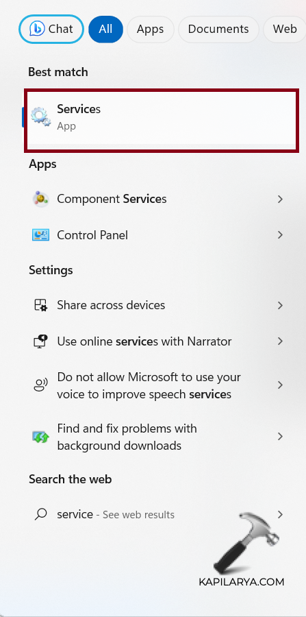1. Ανοίξτε τις υπηρεσίες αναζητώντας την στη γραμμή αναζήτησης.