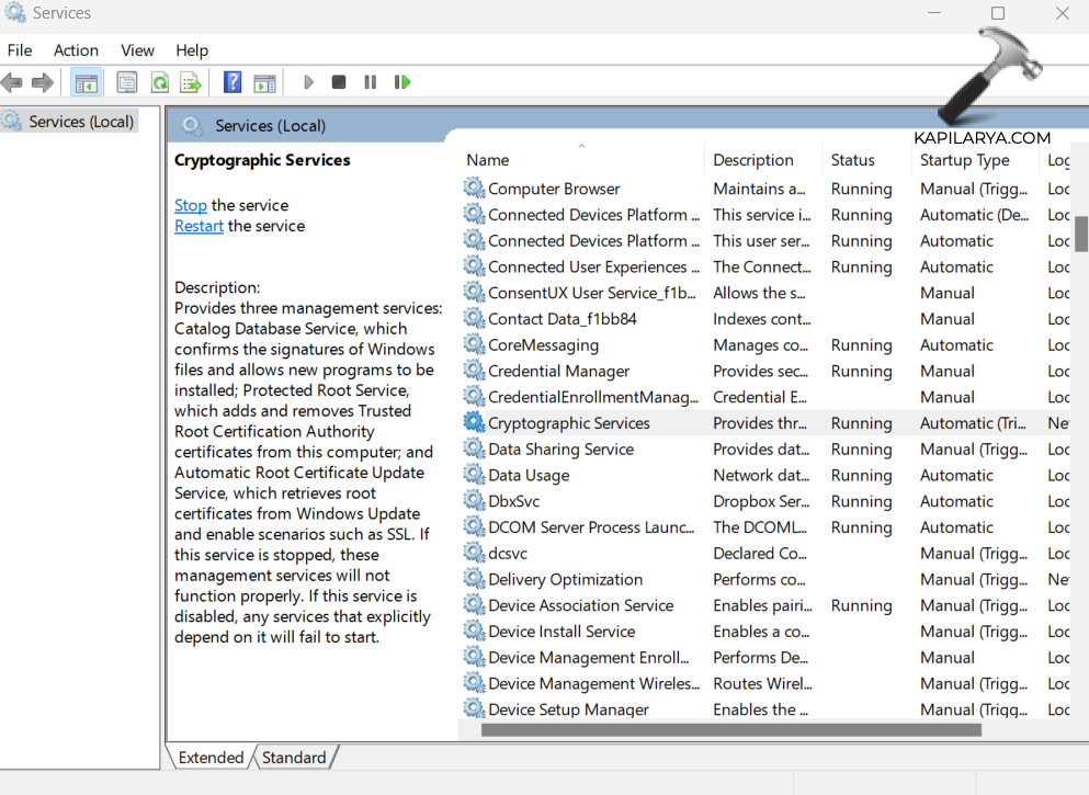 2 Στη συνέχεια, κάντε δεξί κλικ στο "Cryptographic Services" και επιλέξτε "Stop".
