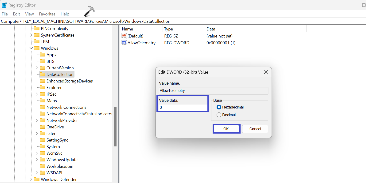 HKEY_LOCAL_MACHINESOFTWAREPoliciesMicrosoftWindowsDataCollection