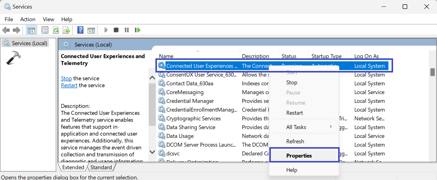 2. Κάντε διπλό κλικ στο "Συνδεδεμένη εμπειρία χρήστη και τηλεμετρία"Υπηρεσία.