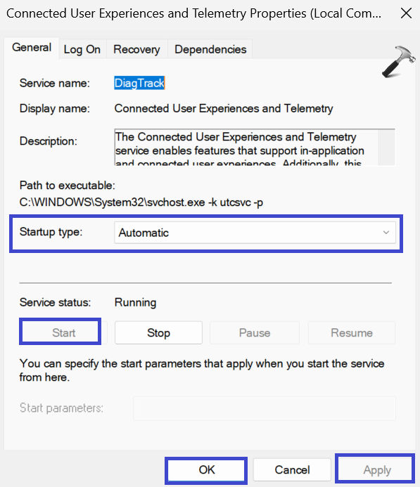 7. Κάτω από τον τύπο εκκίνησης, επιλέξτε "Αυτόματο«.