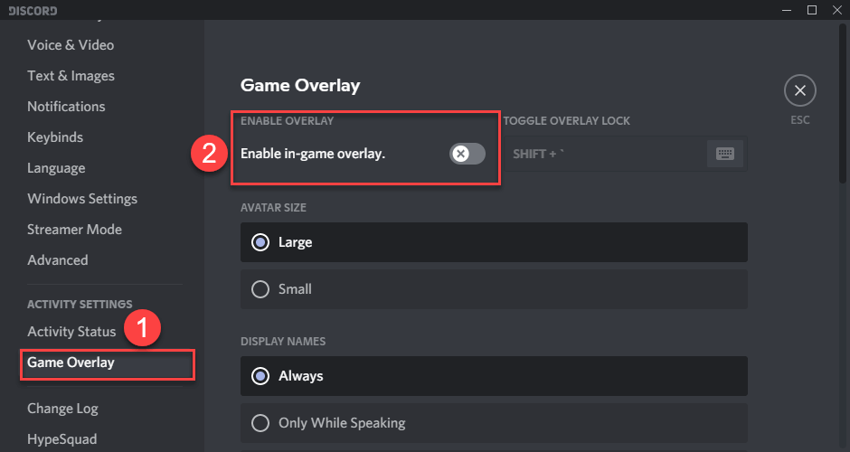 Το χαρακτηριστικό επικάλυψης χρησιμοποιεί πολλούς πόρους συστήματος που μπορεί να οδηγήσουν σε προβλήματα απόδοσης υπολογιστών, όπως τα συγκρούσεις παιχνιδιών. Ως εκ τούτου, πριν από την έναρξη, συμβουλεύουμε να τερματίσετε τυχόν περιττές εφαρμογές φόντου. Αυτό θα μπορούσε να μεταβάλει τη σταθερότητα ή τη λειτουργικότητα του παιχνιδιού. Για παράδειγμα, χρησιμοποιήστε τις παρακάτω οδηγίες για να απενεργοποιήσετε την επικάλυψη διαφωνίας.