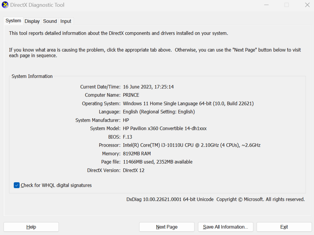 Βήμα 2:ΤύποςDxdiagκαι χτυπήστε τοΕισάγωκουμπί.