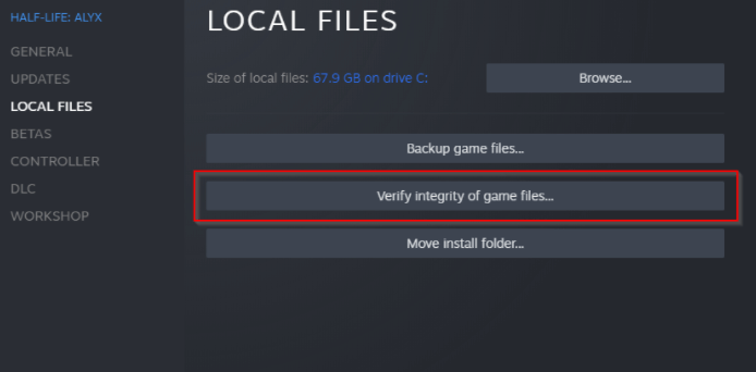 Βήμα 3:ΕπιλέγωΤοπικά αρχείααπό το αριστερό μενού και στη συνέχεια επιλέξτεΕπαληθεύστε την ακεραιότητα των αρχείων παιχνιδιών.