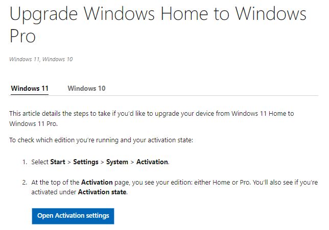 Η αναβάθμιση από τις εκδόσεις Windows σε Windows Pro ή Enterprise, η οποία συνοδεύεται από τον τοπικό επεξεργαστή πολιτικής ομάδας, είναι μια άλλη συνιστώμενη πορεία δράσης. Ανατρέξτε στη σελίδα της Microsoft εδώ εάν θέλετε βοήθεια με την αναβάθμιση:Αποκτήστε Windows Pro αντί Windows Home.