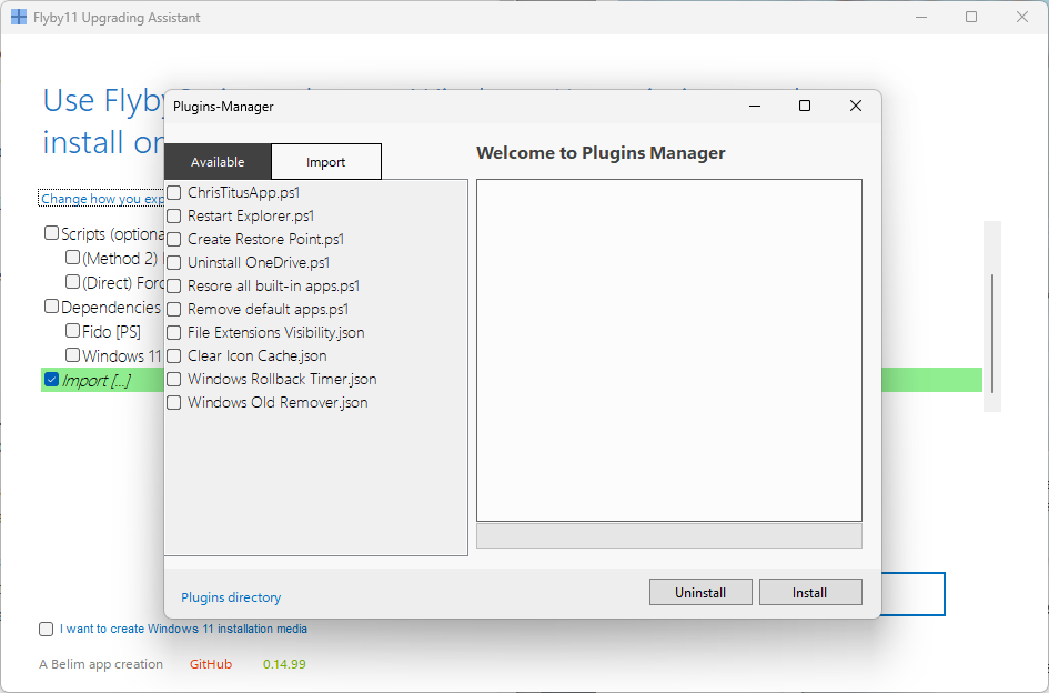 Η δεύτερη μεγάλη προσθήκη είναι ένα σύστημα plugin. Αυτή δεν είναι η πρώτη εφαρμογή του προγραμματιστή με σύστημα plugin. Μπορείτε να το ενεργοποιήσετε επιλέγοντας την επιλογή εισαγωγής στην κύρια διεπαφή.