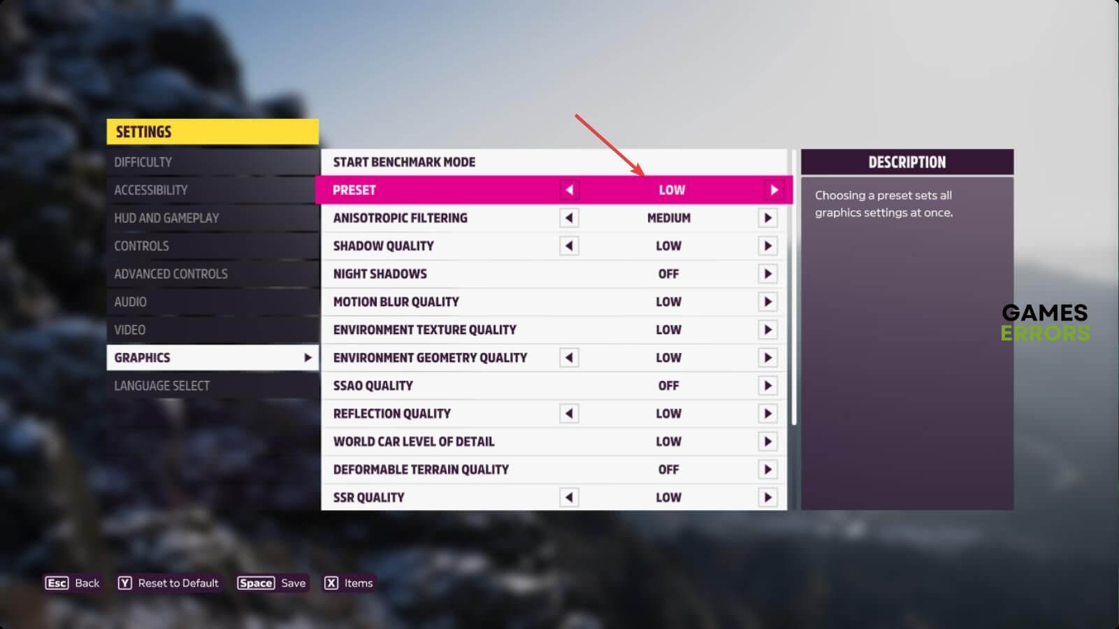 - Μεταβείτε ξανά στις ρυθμίσεις βίντεο του Forza Horizon.