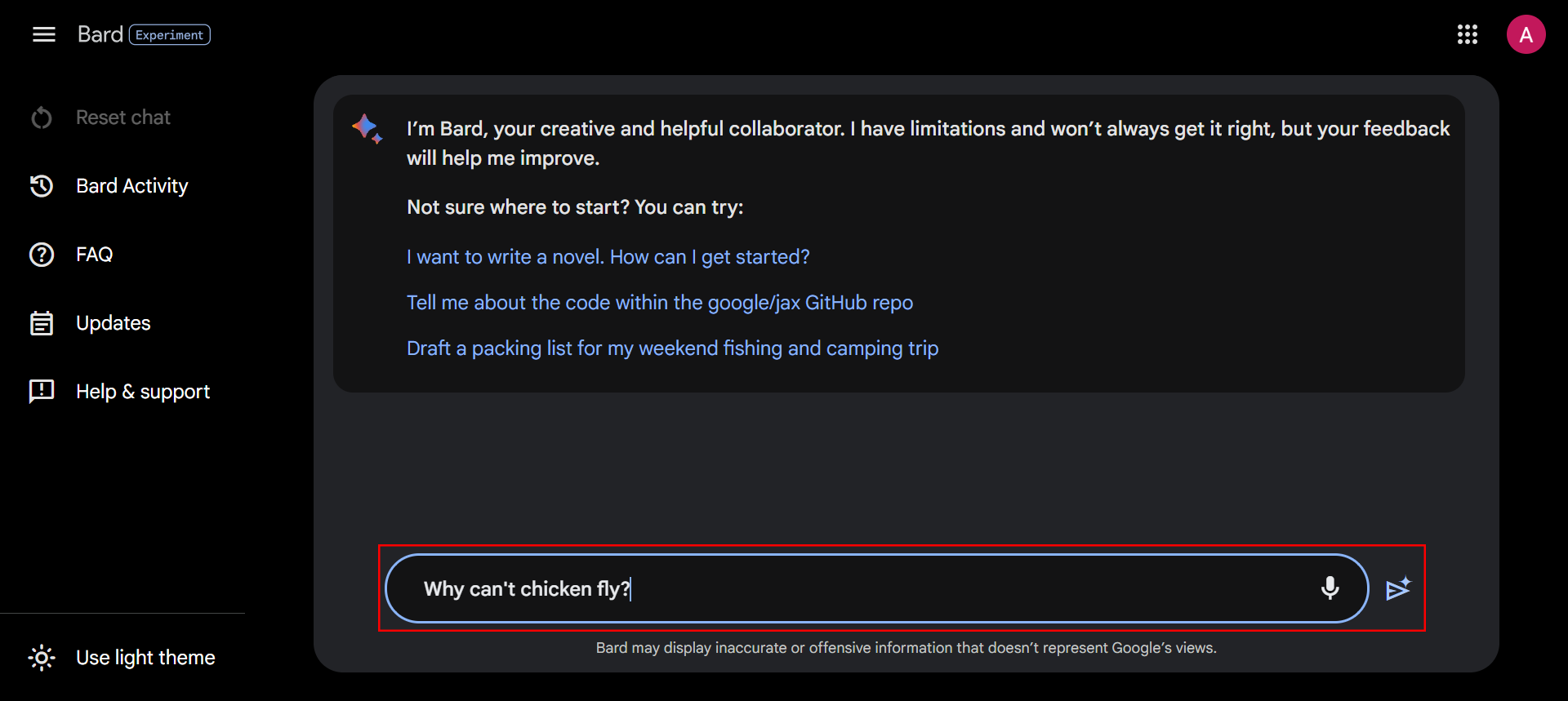 - Οι απαντήσεις του Google Bard μπορεί να είναι προσβλητικές ή άσχετες, ωστόσο, δεν αντιπροσωπεύουν τις απόψεις της Google με κανέναν τρόπο.