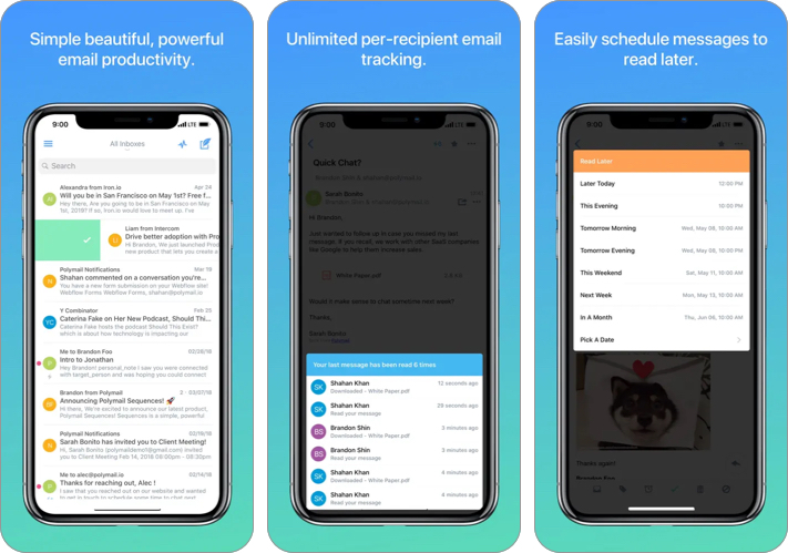 Για τις ομάδες, το Polymail προσφέρει συνεργατικά εργαλεία, επιτρέποντάς σας να μοιραστείτε τα μηνύματα ηλεκτρονικού ταχυδρομείου και να αφήσετε σχόλια, καθιστώντας την ομαλότερη επικοινωνία. Η αυτοματοποιημένη δυνατότητα προβολής σας επιτρέπει να προγραμματίζετε μηνύματα ηλεκτρονικού ταχυδρομείου και παρακολούθησης, το οποίο είναι ιδανικό για τους χρήστες των επιχειρήσεων που χειρίζονται πωλήσεις ή μάρκετινγκ. Ωστόσο, μόνο μερικά από αυτά τα προηγμένα χαρακτηριστικά διατίθενται στην έκδοση κινητής τηλεφωνίας.