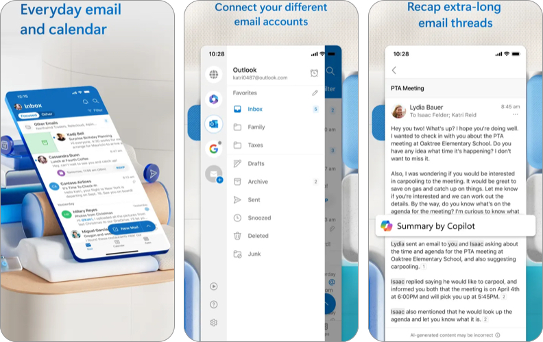 Το Outlook είναι μια αξιόπιστη εφαρμογή ηλεκτρονικού ταχυδρομείου για το iPhone και το iPad. Προσφέρει έναΕστιασμένα ΕισερχόμεναΑυτό διατηρεί σημαντικά μηνύματα ηλεκτρονικού ταχυδρομείου χωριστά από τα υπόλοιπα. Υποστηρίζει πολλούς παρόχους ηλεκτρονικού ταχυδρομείου, όπως το Outlook, το Gmail, το Yahoo και το IMAP, καθιστώντας την σταθερή επιλογή για τη διαχείριση όλων των λογαριασμών σας σε ένα μέρος.