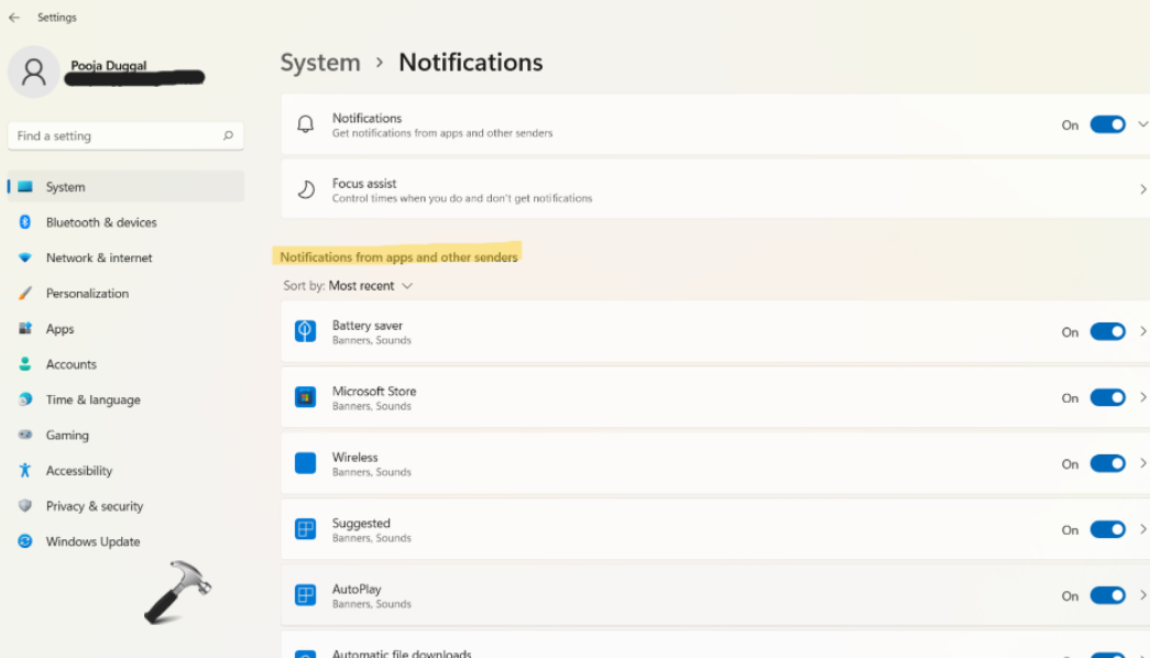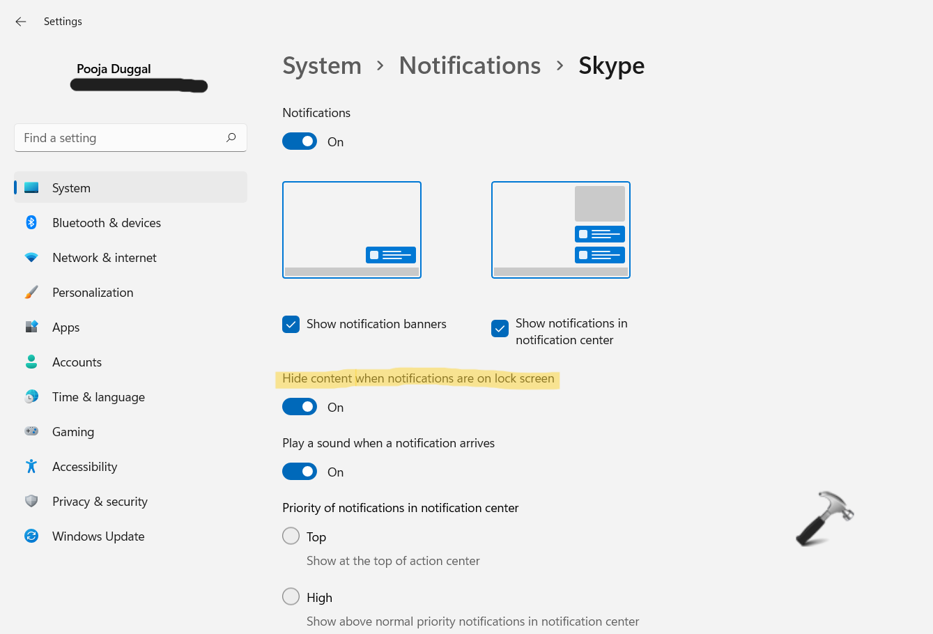 Windows 11Εμφανίζει ειδοποιήσεις στην οθόνη κλειδώματος, τα πανό ειδοποιήσεων και το κέντρο ειδοποιήσεων. Οι ειδοποιήσεις είναι ειδοποιήσεις από το σύστημα, τις εφαρμογές και άλλους αποστολείς. Οι χρήστες μπορούν να κρύψουν το περιεχόμενο όταν οι ειδοποιήσεις βρίσκονται στην οθόνη κλειδώματος των Windows 11. Μπορείτε να το κάνετε αυτό για την απόκρυψη περιεχομένου των ειδοποιήσεων για οποιεσδήποτε εφαρμογές στην οθόνη κλειδώματος για ιδιωτικότητα.