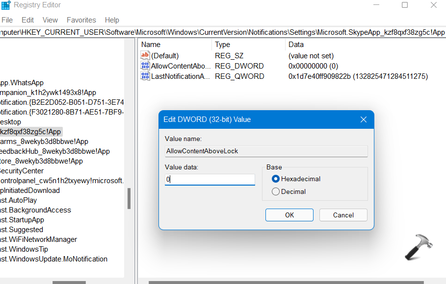 HKEY_CURRENT_USERSoftwareMicrosoftWindowsCurrentVersionNotificationsSettings