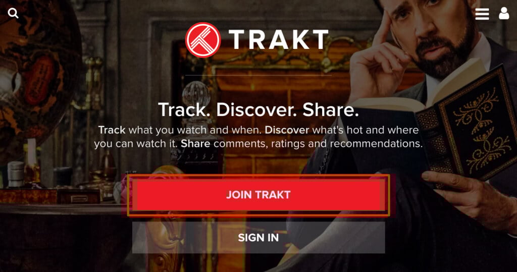 - ΕπίσκεψηΙστοσελίδα Trakt TVσε οποιοδήποτε πρόγραμμα περιήγησης ιστού και επιλέξτεΓίνετε μέλος του TraktήΓίνετε μέλος του Trakt δωρεάνστην αρχική οθόνη.