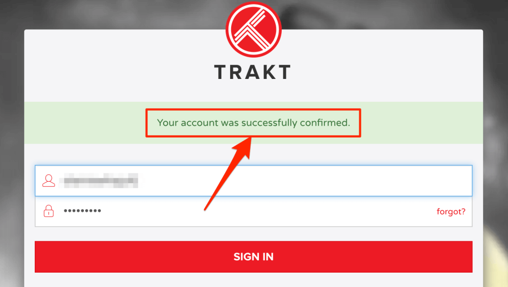 - Επιλέξτε τοΕπιβεβαιώστε τον λογαριασμόκουμπί για να ενεργοποιήσετε τον λογαριασμό Trakt TV.