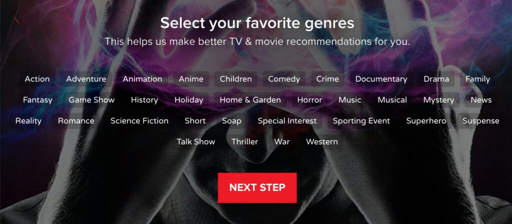 - Επιλέξτε τα αγαπημένα σας είδη για ταινίες και τηλεοπτικές εκπομπές και επιλέξτεΕπόμενο βήμα.