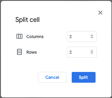 - Στο αναδυόμενο παράθυρο, εισαγάγετε τον αριθμό των στηλών ή σειρών που θέλετε να χωρίσετε το κελί. Μπορείτε επίσης να χρησιμοποιήσετε τα βέλη για να μετακινηθείτε προς τα πάνω και προς τα κάτω σε μικρές αυξήσεις.