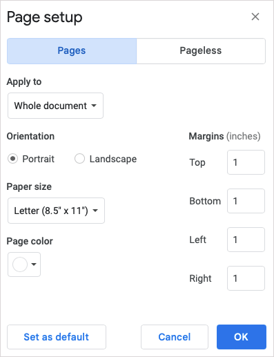- Μπορείτε να χρησιμοποιήσετε μόνο αριθμούς γραμμής στη μορφή σελίδων. Εάν χρησιμοποιείτε τη μορφή χωρίς pag από προεπιλογή, μπορείτε να αλλάξετε επιλέγονταςΑρχείο>Ρύθμιση σελίδας>Σελίδες.