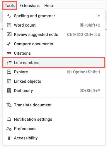 Θα παρατηρήσετε διαφορετικές επιλογές για τους αριθμούς γραμμής σας στα Έγγραφα Google.