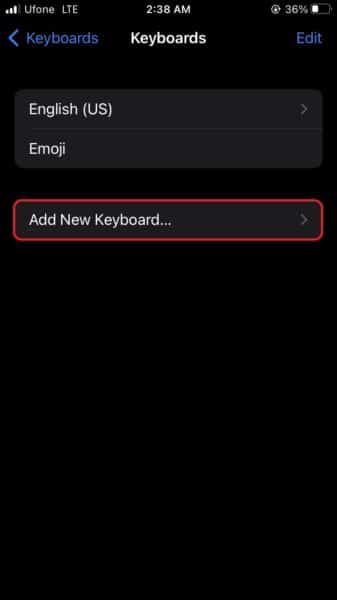 - Εδώ, θα δείτε μια λίστα με πληκτρολόγια που είναι ενεργοποιημένα στο iPhone σας. Για να προσθέσετε μια νέα γλώσσα στο πληκτρολόγιο, πατήστεΠροσθήκη νέου πληκτρολογίου.