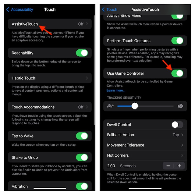 Το Butared Deep στη ρύθμιση προσβασιμότητας είναι ένα εύχρηστο χαρακτηριστικό που σας επιτρέπει να χρησιμοποιείτε έναν ελεγκτή παιχνιδιών με το Assistivetouch στη συσκευή σας iOS. Ως αποτέλεσμα, δεν θα χρειαστεί να βασιστείτε σε ένα εργαλείο ή μια υπηρεσία τρίτου μέρους για να κάνετε τον ελεγκτή σας να παίζει ωραία με αυτό το χρήσιμο χαρακτηριστικό προσβασιμότητας.