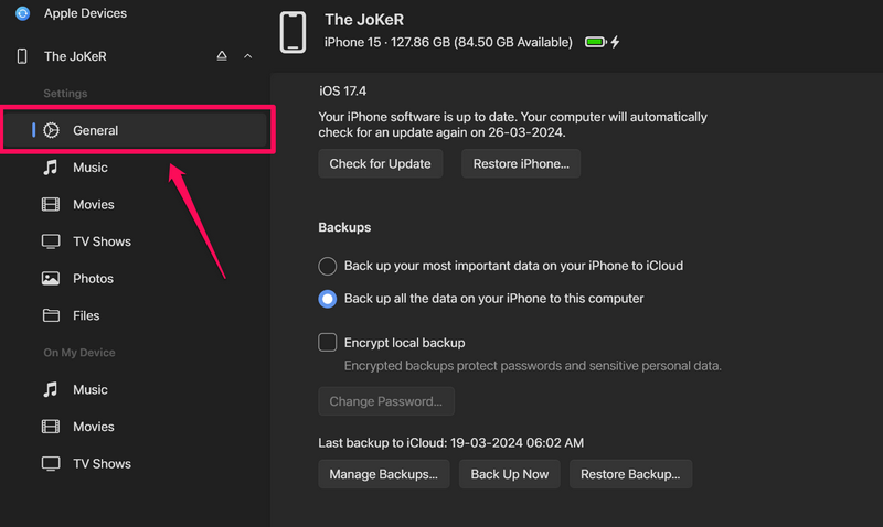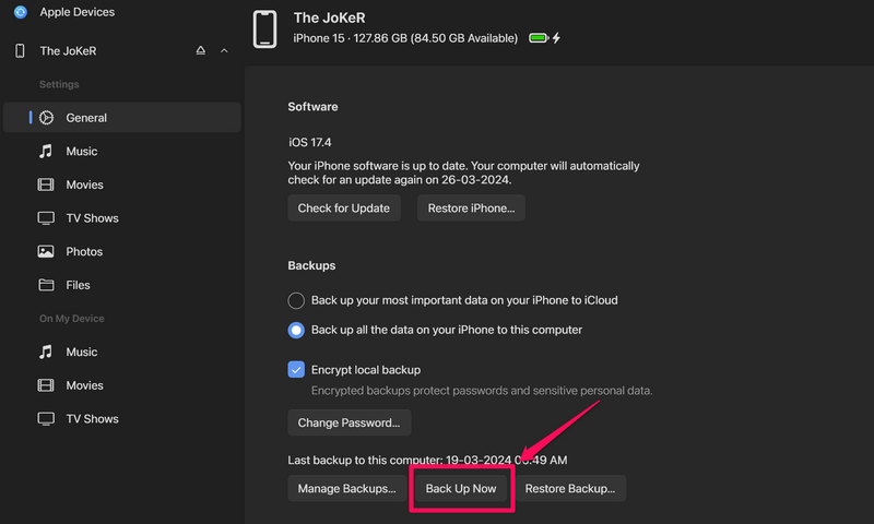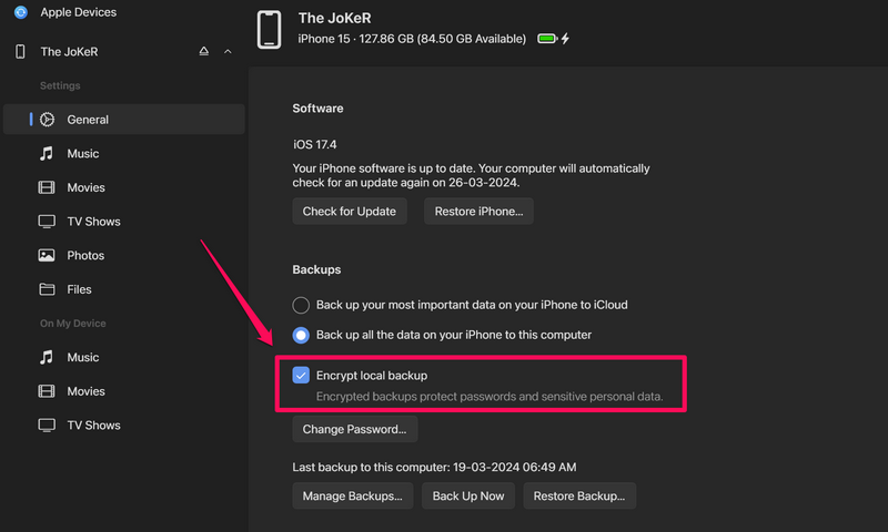Εντάξει, προτού προχωρήσουμε στην πραγματική διαδικασία για το πώς να δημιουργήσετε αντίγραφα ασφαλείας του iPhone σας με την εφαρμογή Apple Devices στον υπολογιστή σας Windows 11 ή στο φορητό υπολογιστή σας, ρίξτε μια ματιά σε μερικούς από τους σημαντικούς δείκτες κάτω από το γεγονός ότι πρέπει να έχετε κατά νου όταν δημιουργείτε ένα τοπικό αντίγραφο ασφαλείας iPhone: