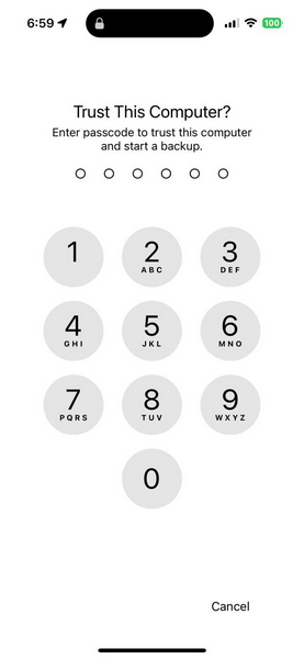2. Συνδέστε το iPhone σας με τον υπολογιστή σας ή τον φορητό υπολογιστή σαςχρησιμοποιώντας ένα συμβατό καλώδιο καιξεκλειδώστε τοχρησιμοποιώντας αναγνωριστικό προσώπου ή αναγνωριστικό αφής.