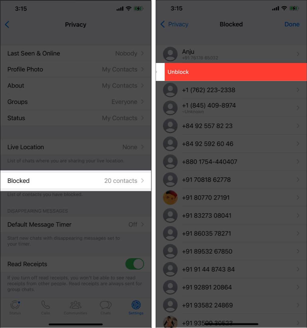 Είναι απλό να ξεμπλοκάρετε κάποιον που χρησιμοποιεί τις ρυθμίσεις του WhatsApp. Μπορείτε να επιλέξετε οποιαδήποτε από τις προσεγγίσεις που αναφέρονται παρακάτω και να τις εφαρμόσετε.