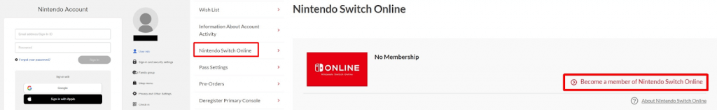 - Από το μενού στην αριστερή πλευρά της οθόνης σας, επιλέξτεNintendo Switch online.