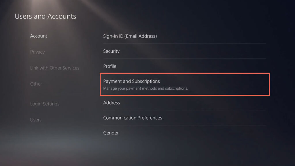 - ΕπιλέγωΛογαριασμός>Πληρωμή και συνδρομήS (PS5) ήΠληροφορίες λογαριασμού(PS4).