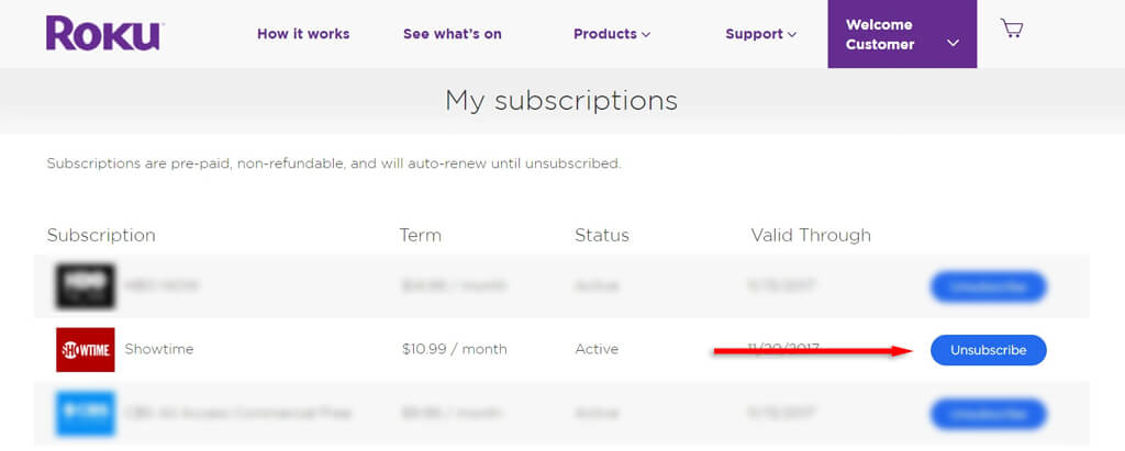 5. Πώς να ακυρώσετε το Showtime μέσω μιας συσκευής Roku