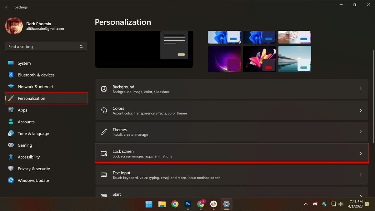 - Κλικ στοΕξατομίκευσηΣτο αριστερό παράθυρο> κάντε κλικ στοΟθόνη κλειδώματοςαυτί.