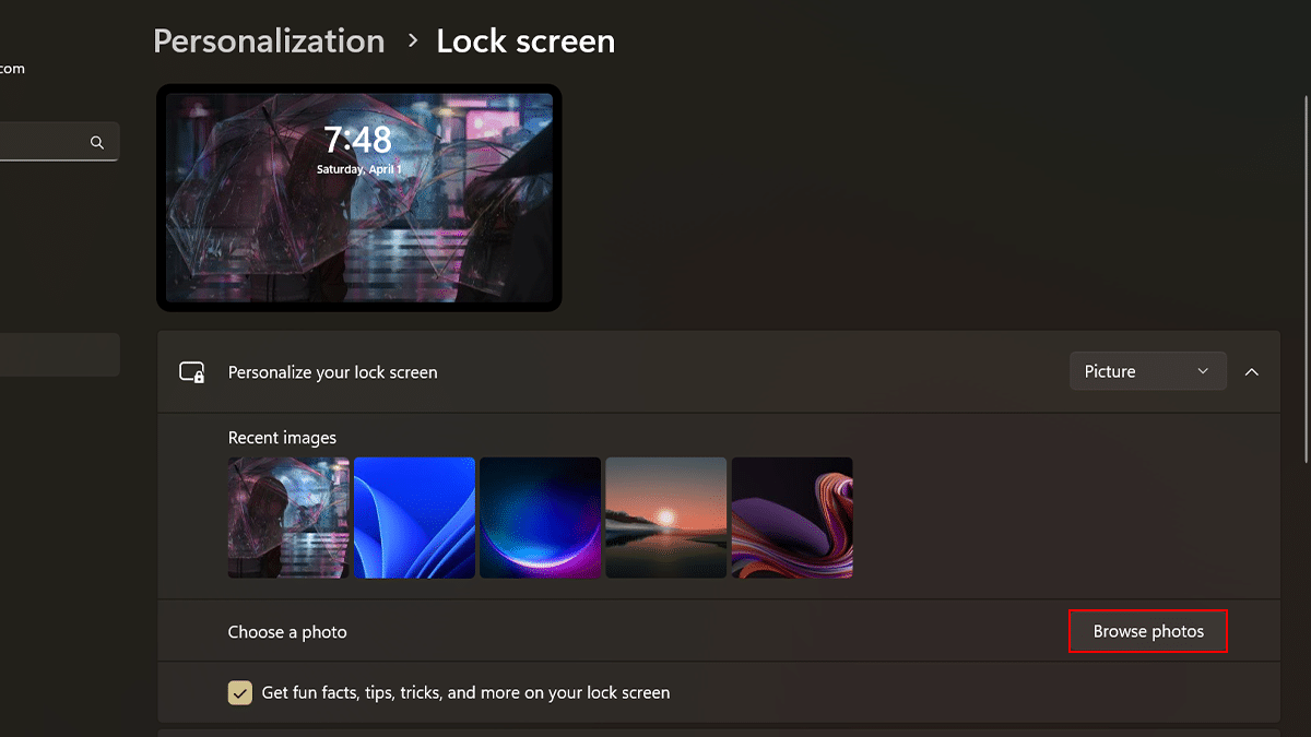 Στα Windows 11, η οθόνη κλειδώματος έρχεται συνήθως με έναΠροβολέας των Windowsχαρακτηριστικό που αλλάζει ταπετσαρία κάθε φορά που ξεκινάτε τον υπολογιστή σας.
