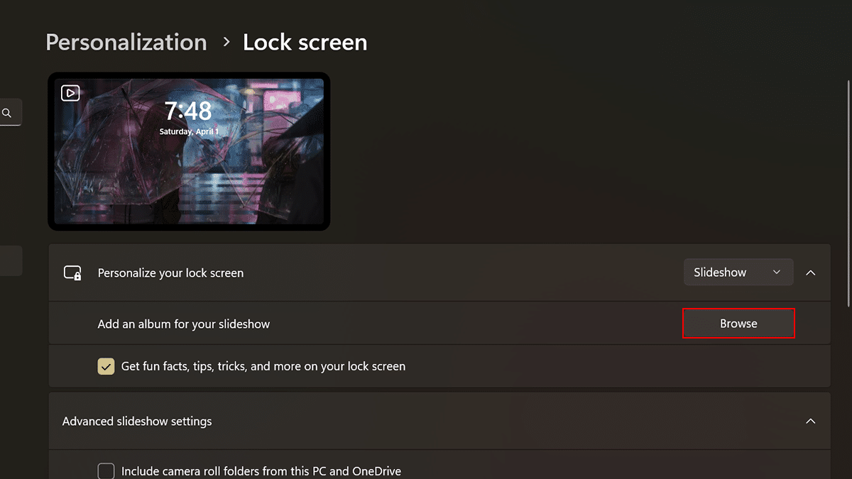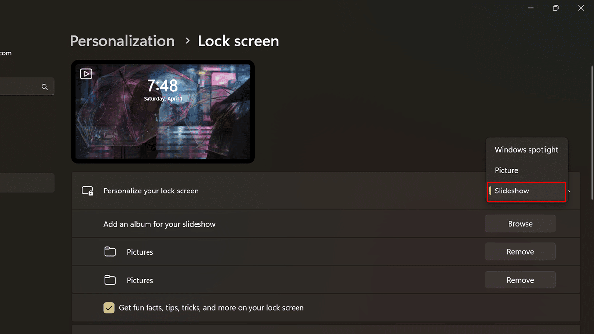 - Όταν τελειώσετε, η οθόνη κλειδώματος των Windows 11 θα εμφανίζει και θα περιστρέψει τις εικόνες από το φάκελο που επιλέξατε.