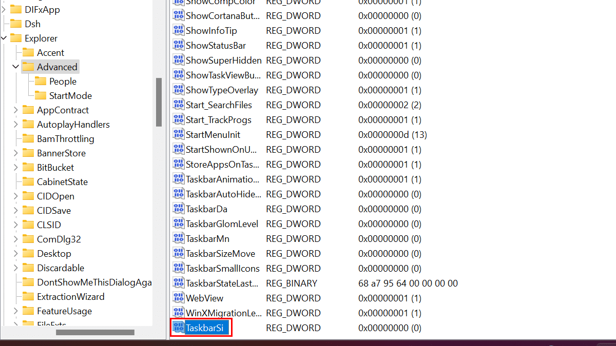 HKEY_CURRENT_USERSoftwareMicrosoftWindowsCurrentVersionExplorerAdvanced