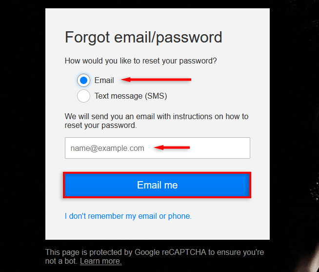 - ΚλικE-mail, τότε εισαγάγετε τη διεύθυνση email σας και επιλέξτεΣτείλτε μου email.