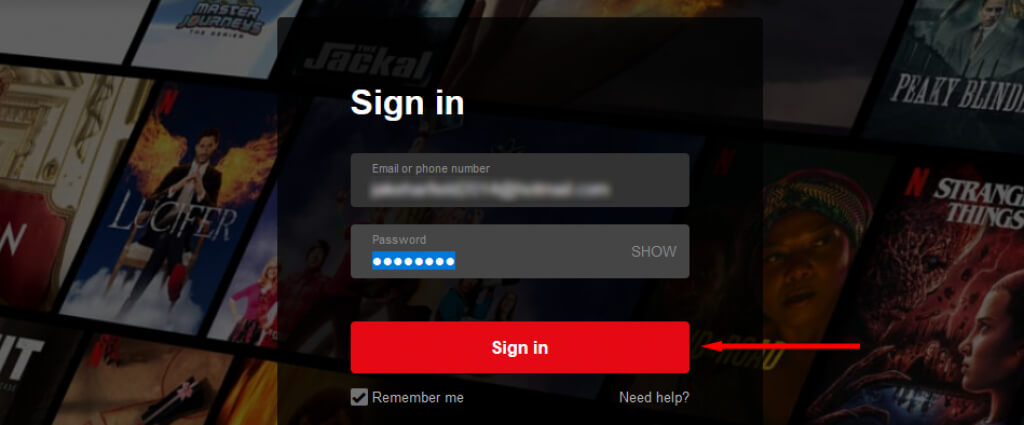 - Στη σελίδα σύνδεσης, εισάγετε το email και τον κωδικό πρόσβασής σας για να συνδεθείτε στο λογαριασμό Netflix.