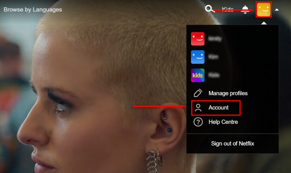 - Κάντε κλικ στο εικονίδιο της εικόνας του προφίλ σας στην επάνω δεξιά γωνία της σελίδας και, στη συνέχεια, επιλέξτεΛογαριασμός.