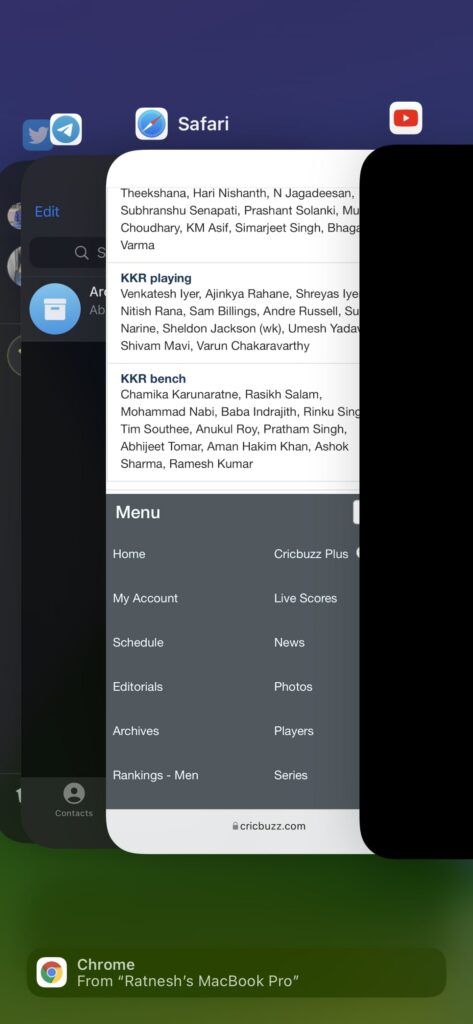 Μπορείτε να δείτε τις εφαρμογές που εκτελούνται στο iPhone σας ανοίγοντας το μενού των πρόσφατων εφαρμογών. Συντάξτε από το κάτω μέρος και παύση στη μέση της οθόνης. Τώρα θα βρείτε όλες τις εφαρμογές που τρέχουν στο iPhone σας.