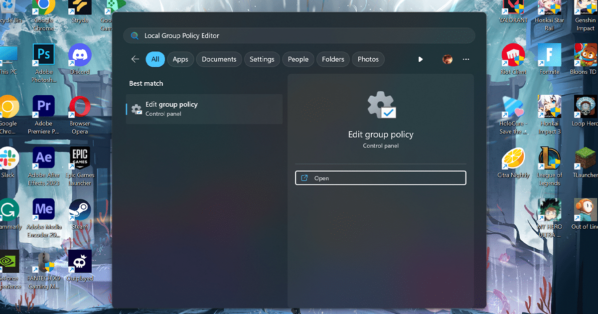 - Άνοιγμα εκκίνησης, αναζήτηση γιαΕπεξεργαστής πολιτικής τοπικής ομάδαςκαι κάντε κλικ στοΑνοιχτόκουμπί.