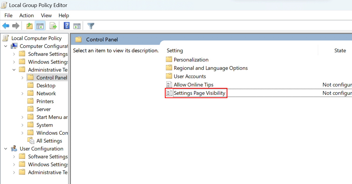 Computer Configuration > Administrative Templates > Control Panel