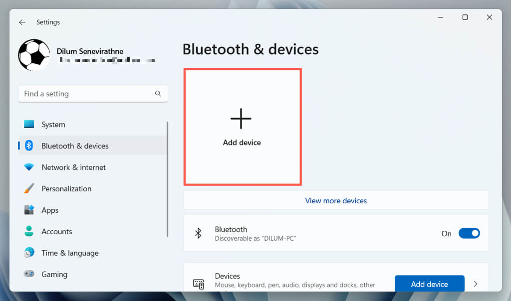- ΕπιλέγωBluetooth & συσκευέςκαι επιλέξτεΠροσθέστε συσκευή.
