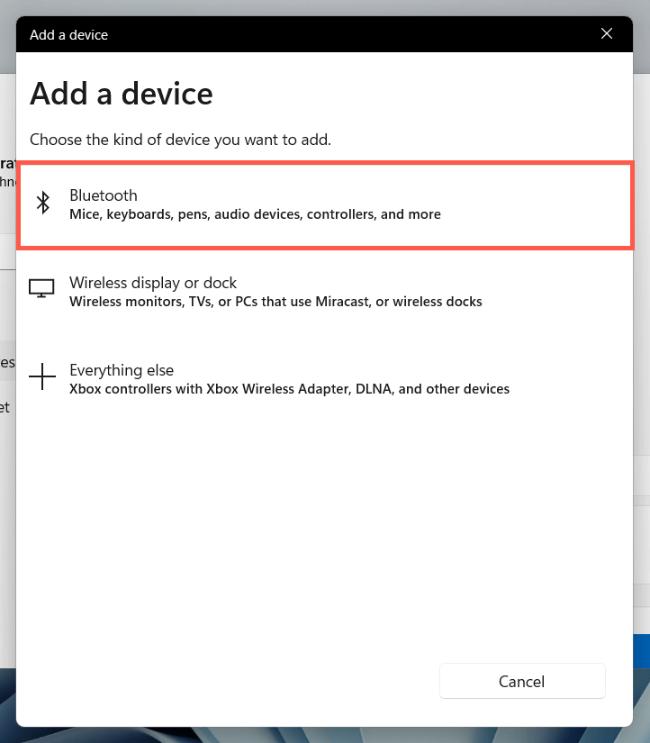 - Επιλέξτε το ποντίκι όταν εμφανίζεται μέσα στο παράθυρο "Προσθήκη συσκευής".