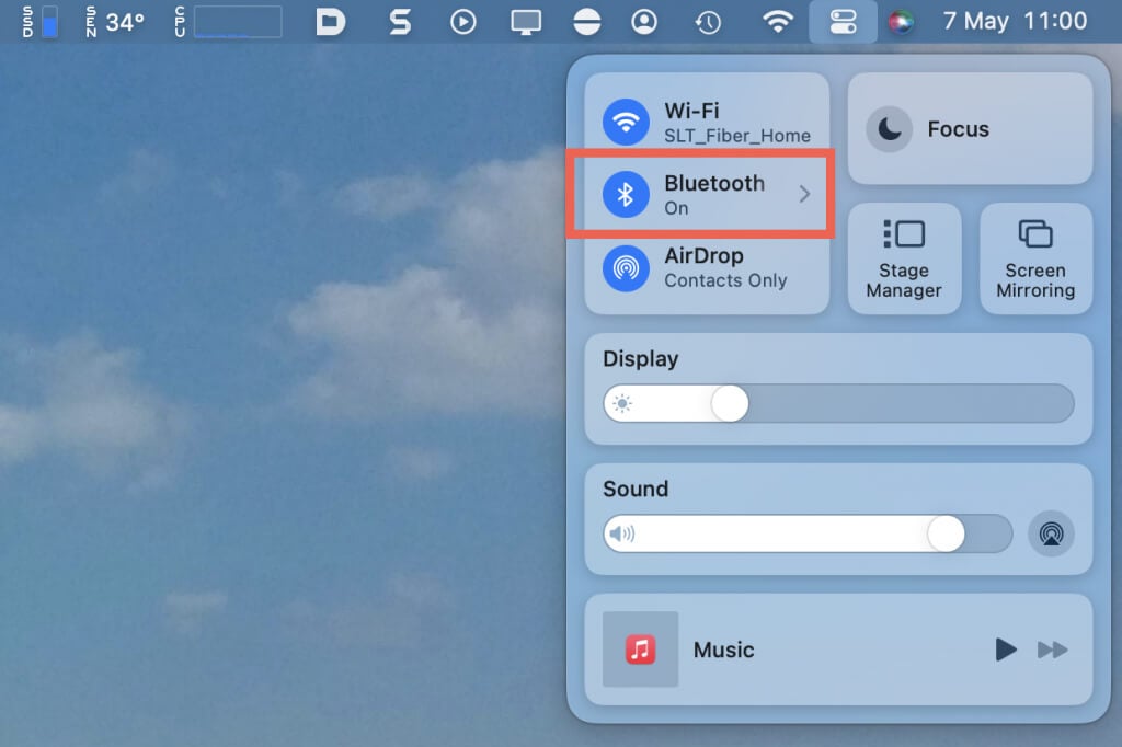 - Ανοίξτε το κέντρο ελέγχου στο MacBook, IMac ή Mac Mini και επεκτείνετε τοBluetoothέλεγχος. Ή, επιλέξτε τοBluetoothεικονίδιο στη γραμμή μενού.