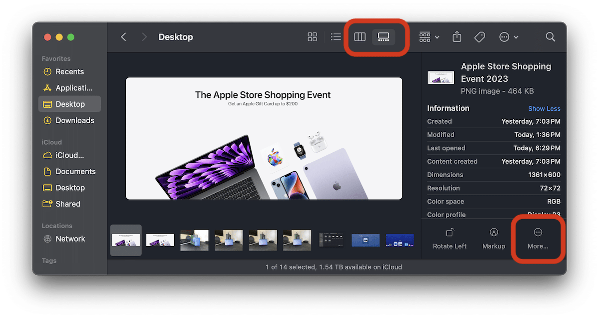 - Στην εφαρμογή Finder, επιλέξτε τις στήλες ή την προβολή γκαλερί για να εμφανίσετε τις εικόνες.