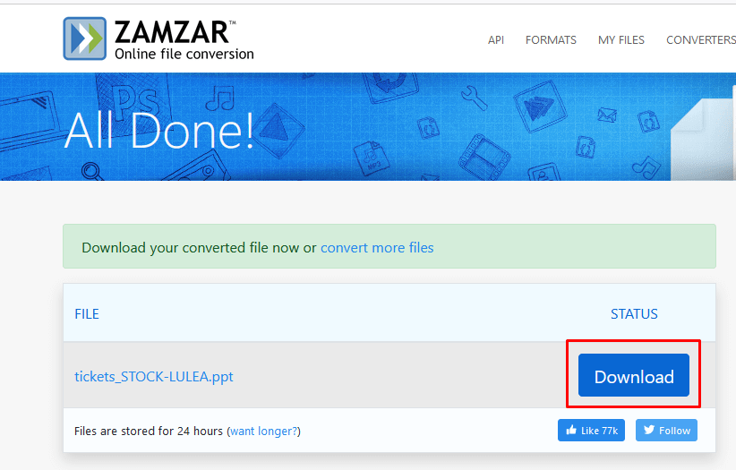 - Μόλις ολοκληρωθεί η διαδικασία,Κατεβάζωτο αρχείο που μετατράπηκε στη συσκευή σας.
