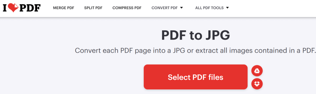 Βήμα 1:Μεταβείτε στον ιστότοπο του Ilovepdf και πατήστε για την επιλογή τουPDF σε JPGμετατροπή.