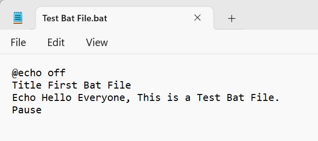 Παρακαλώ μην απογοητεύεστε από το τελικό αποτέλεσμα ακόμα. Πρέπει να καταλάβετε ότι το πρώτο σενάριο παρτίδας που δημιουργήσαμε είχε μόνο τέσσερις γραμμές, όπως το άνοιγμα, τη γραμμή κλεισίματος και τον τίτλο. Η μόνη γραμμή εντολών σε αυτό το σενάριο ήταν το "Echo" που σημαίνει να εμφανιστεί κάτι και αυτό ακριβώς έκανε αυτό το αρχείο παρτίδας.