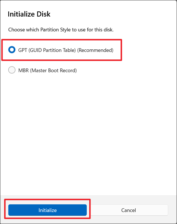 9. Στη συνέχεια, επιλέξτε το στυλ διαμερίσματος και κάντε κλικ στο κουμπί "Προετοιμάζω"Το συνιστώμενο στυλ διαμερίσματος είναιGPT (Πίνακας διαμερισμάτων GUID).