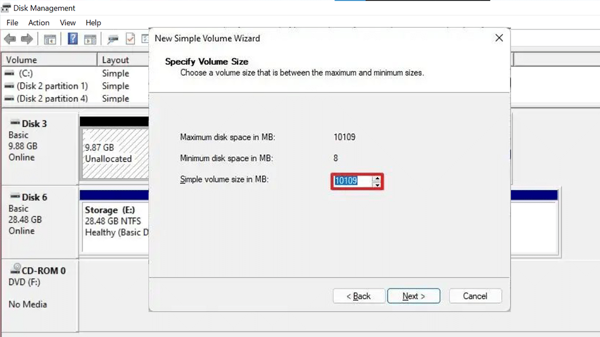 - Κάντε κλικ στοΕπόμενοςκουμπί> επιβεβαιώστε το μέγεθος του διαμερίσματος στο ""Μέγεθος"Ρύθμιση.