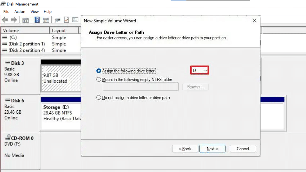 - Κάντε κλικ στοΕπόμενοςκουμπί> Επιλέξτε το "Αναθέστε τον ακόλουθο πρόγραμμα οδήγησης"Επιλογή και επιλέξτε το γράμμα για το νέο διαμέρισμα.